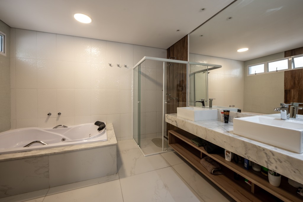 - 5 suítes bem distribuídas, incluindo uma suíte master com closet espaçoso e banheira de hidromassagem